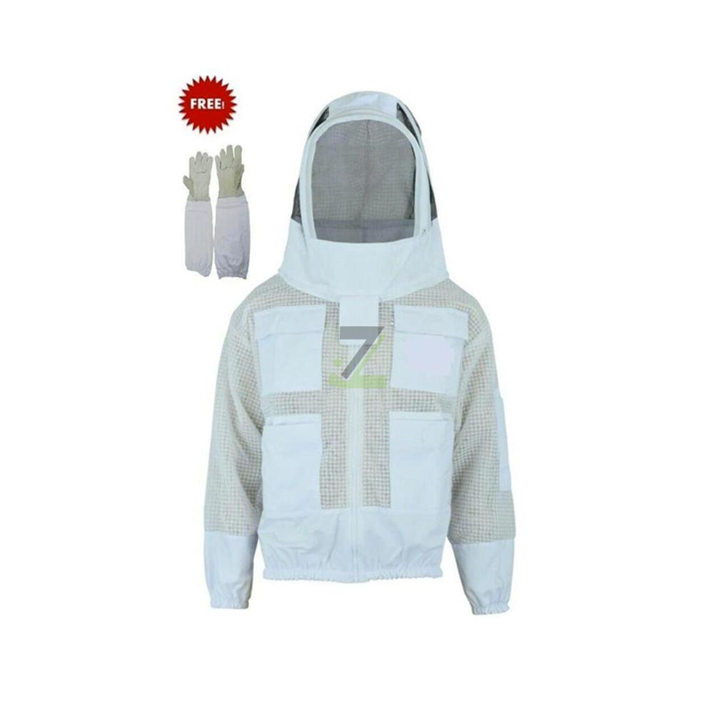 Crafted from breathable, lightweight cotton or poly-cotton fabric with reinforced stitching, offering reliable sting protection, comfort, and airflow for extended beekeeping work.