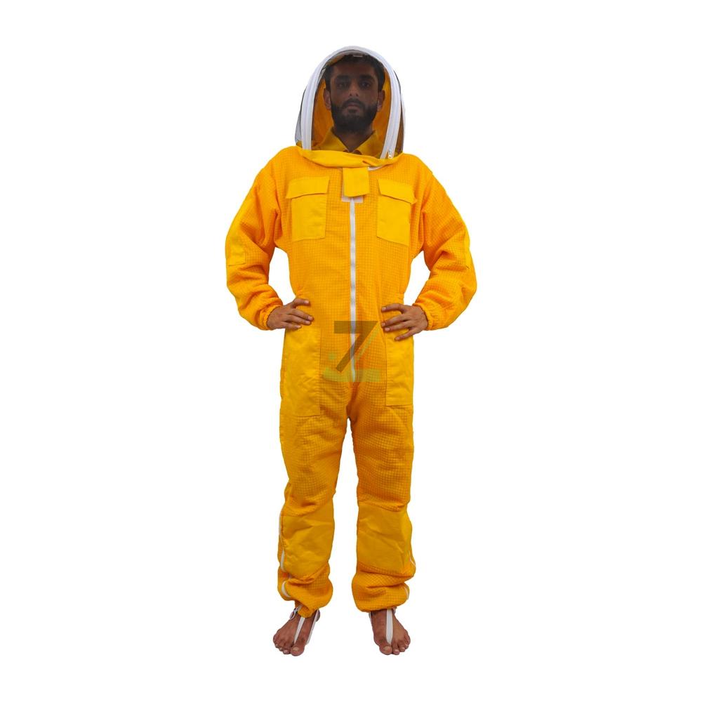 Made from high-quality, breathable cotton or poly-cotton fabric with reinforced seams, providing full-body sting protection, comfort, and durability for safe beekeeping operations.