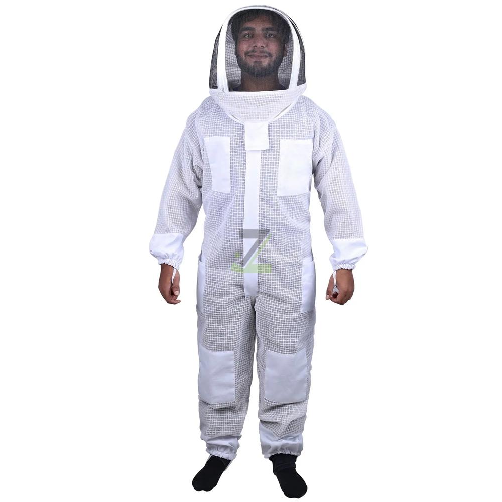 Made from high-quality, breathable cotton or poly-cotton fabric with reinforced seams, providing full-body sting protection, comfort, and durability for safe beekeeping operations.