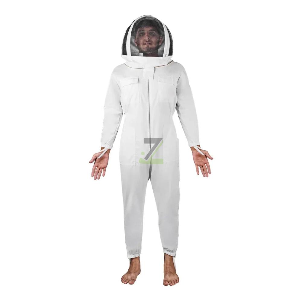Made from high-quality, breathable cotton or poly-cotton fabric with reinforced seams, providing full-body sting protection, comfort, and durability for safe beekeeping operations.
