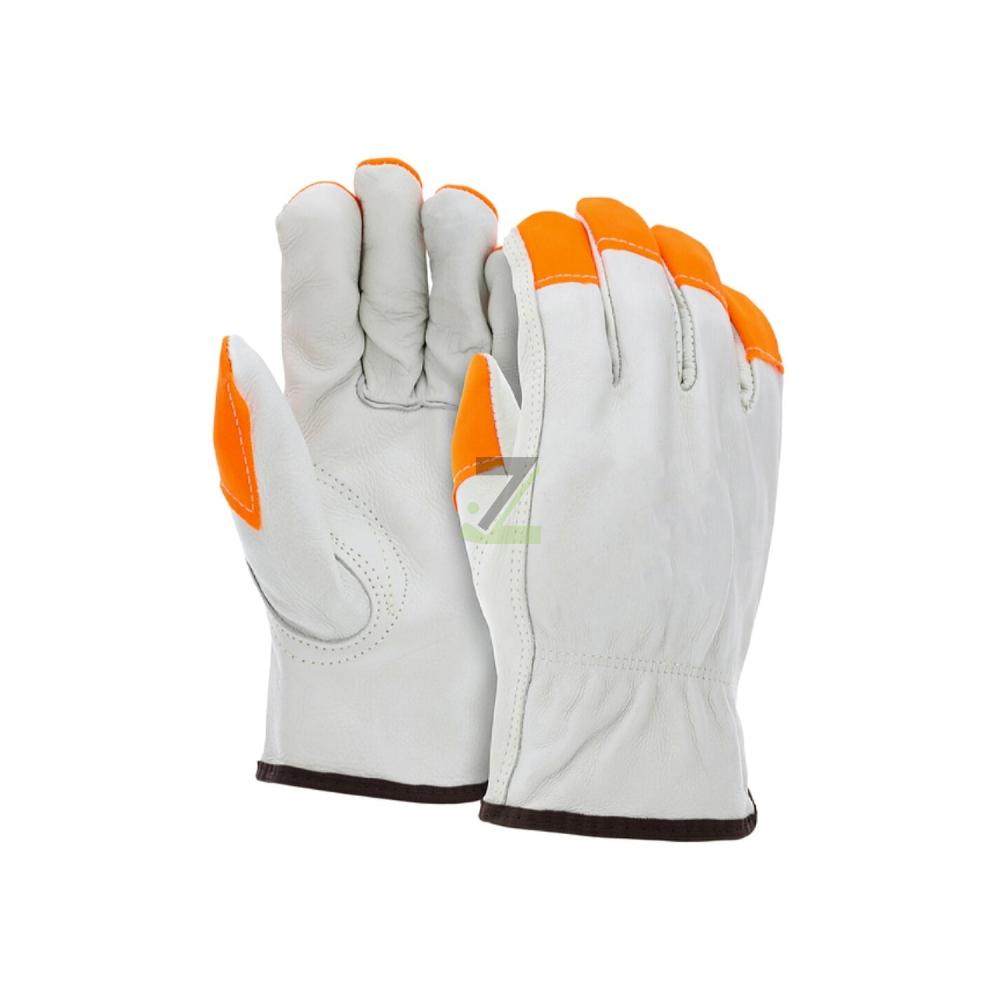 Fluorescent base materials (e.g. yellow, orange) Reflective trim or accents Durable synthetic fabrics like nylon, polyester or leather