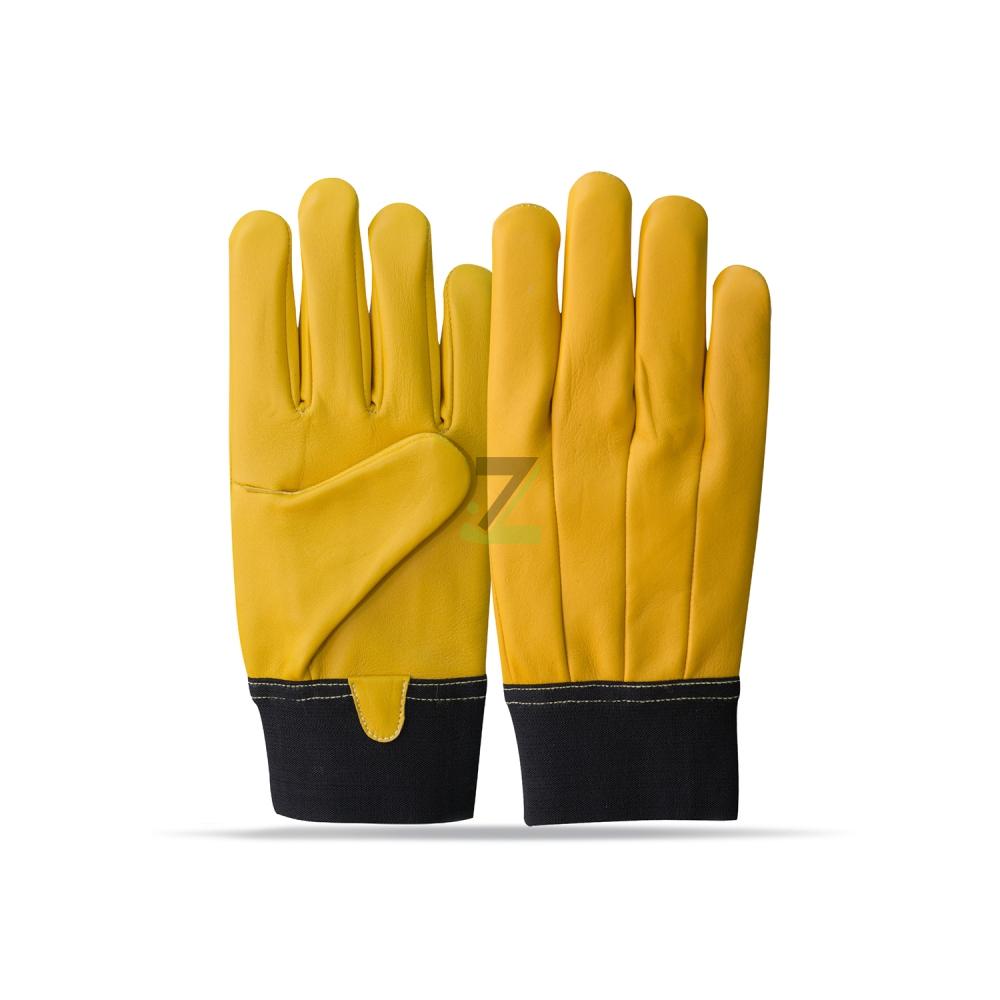 Leather (e.g. cowhide, sheepskin, goatskin) Synthetic fabrics (e.g. Kevlar, nitrile, neoprene) Reinforced palms and knuckles
