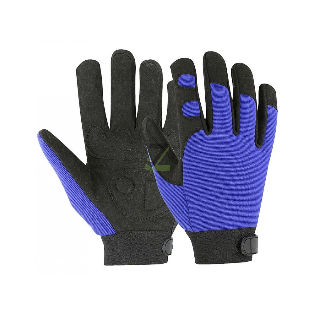 Leather (e.g. cowhide, goatskin) Canvas or cotton Synthetic fabrics (e.g. nylon, polyester) Reinforced palms and knuckles