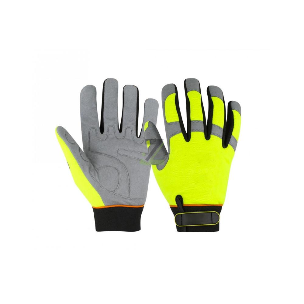 Leather (e.g. cowhide, goatskin) Canvas or cotton Synthetic fabrics (e.g. nylon, polyester) Reinforced palms and knuckles